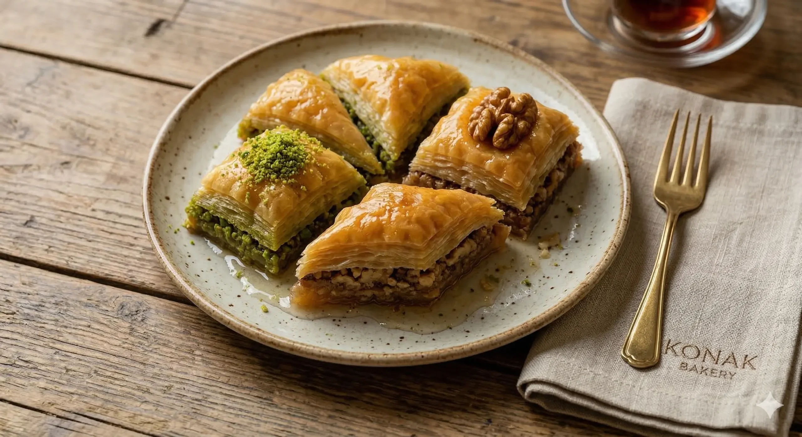 Fıstıklı Baklava (Pistazien-Baklava): Der Klassiker mit fein gemahlenen, intensiv grünen Pistazien.