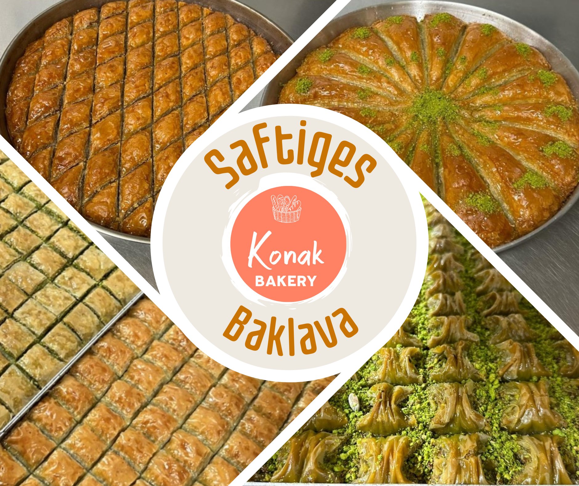 Chers amis, bienvenue dans notre confortable boulangerie Konak pour déguster nos authentiques baklavas accompagnés d'une tasse de café ou de thé.