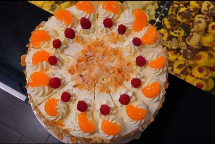 Taze turunçgiller, ahududu ve hafif, yumuşak kremanın kıyılmış bademlerle birleşiminden oluşan bu muhteşem tatlıyı deneyin, çok memnun kalacaksınız.